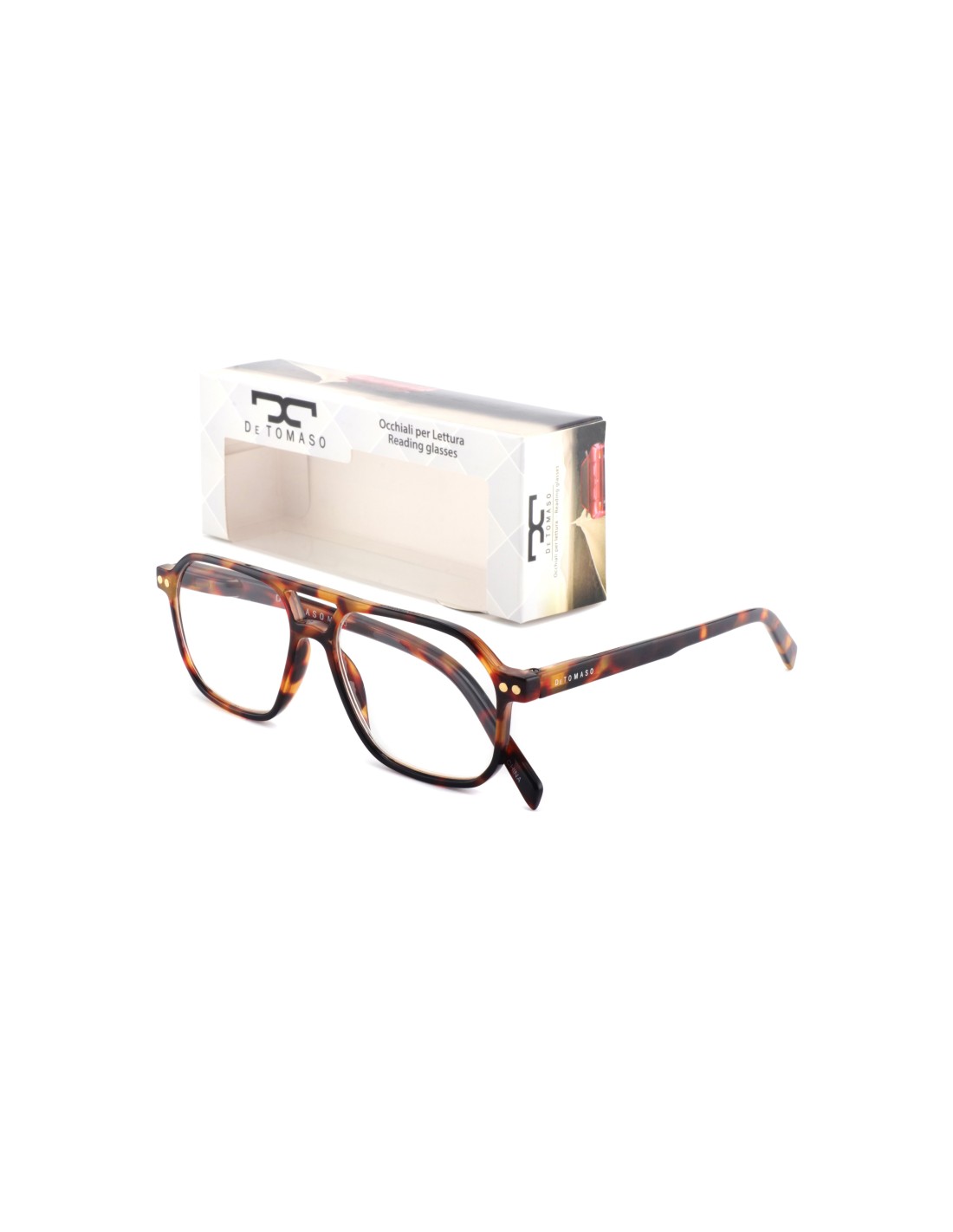Occhiali da lettura De Tomaso, il leggendario brand di automobili sportive di lusso, fondato nel 1959 dal pilota argentino Alejandro De Tomaso con unÕidea semplice ma potente: unire alte prestazioni al romanticismo dello stile italiano. Il brand � di proprietˆ di Industrie Ottiche Italiane, azienda di riferimento in Italia e in Europa nella fabbricazione e distribuzione di occhiali da lettura, occhiali anti-luce blu e occhiali da sole. Montatura unisex con doppio ponte allÕultima moda e eleganti intarsi in metallo sul frontale. Aste flessibili per la migliore adattabilitˆ al viso. Dimensioni: calibro (diametro lente) 53 mm, ponte 16 mm, lunghezza aste 147 mm, larghezza totale frontale 139 mm, altezza frontale 44,2 mm. Qualitˆ testata da Certottica, lÕIstituto Italiano per la Certificazione dei Prodotti Ottici.