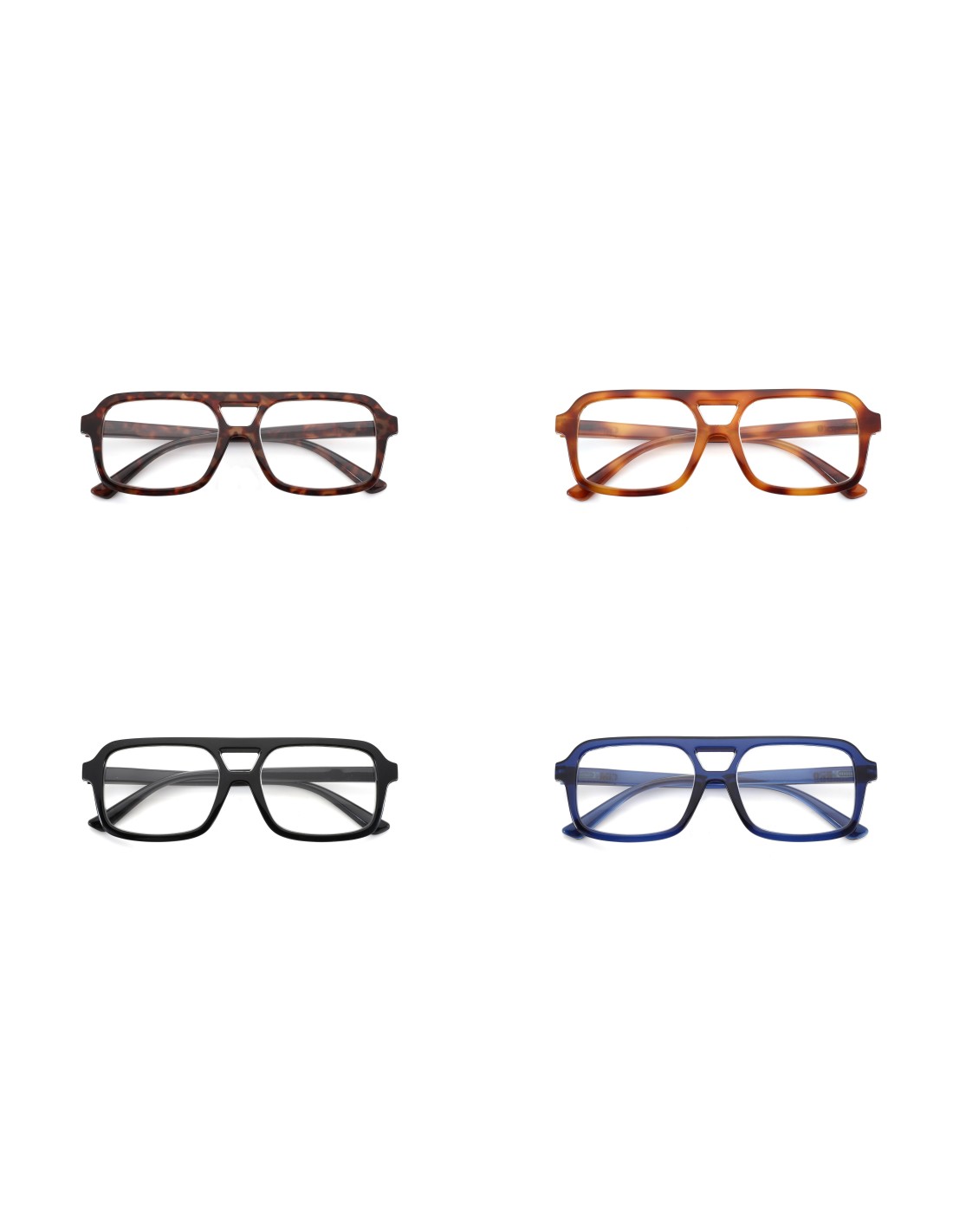 • Montatura unisex con doppio ponte all'ultima moda.